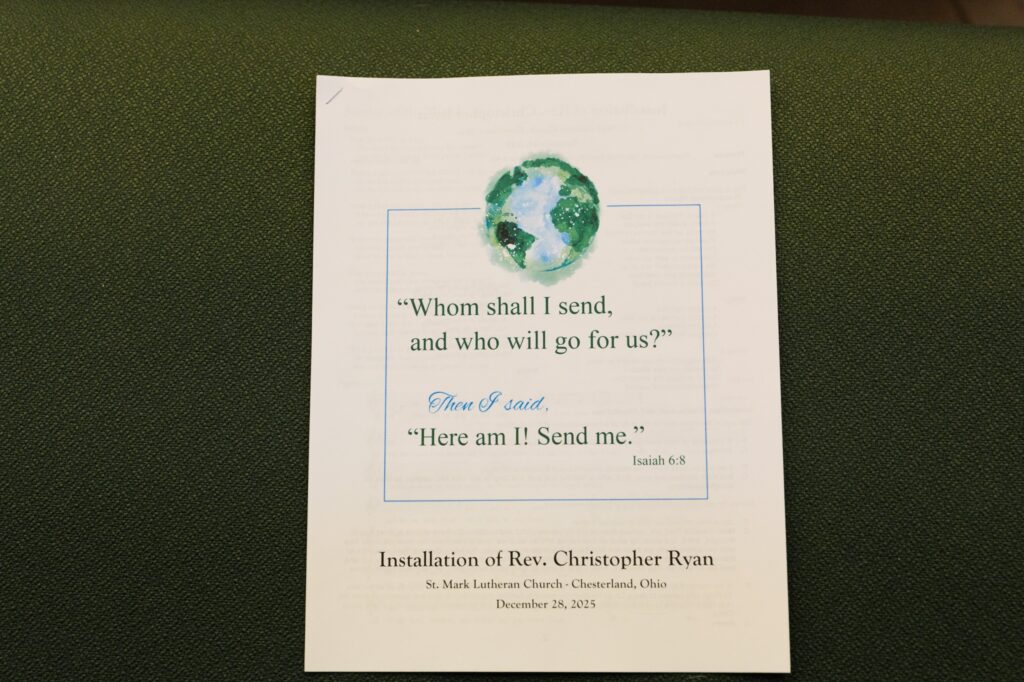 Pastor Chris Ryan starts his full-time call at St Mark starting this January. His installation service was on December 28, 2025